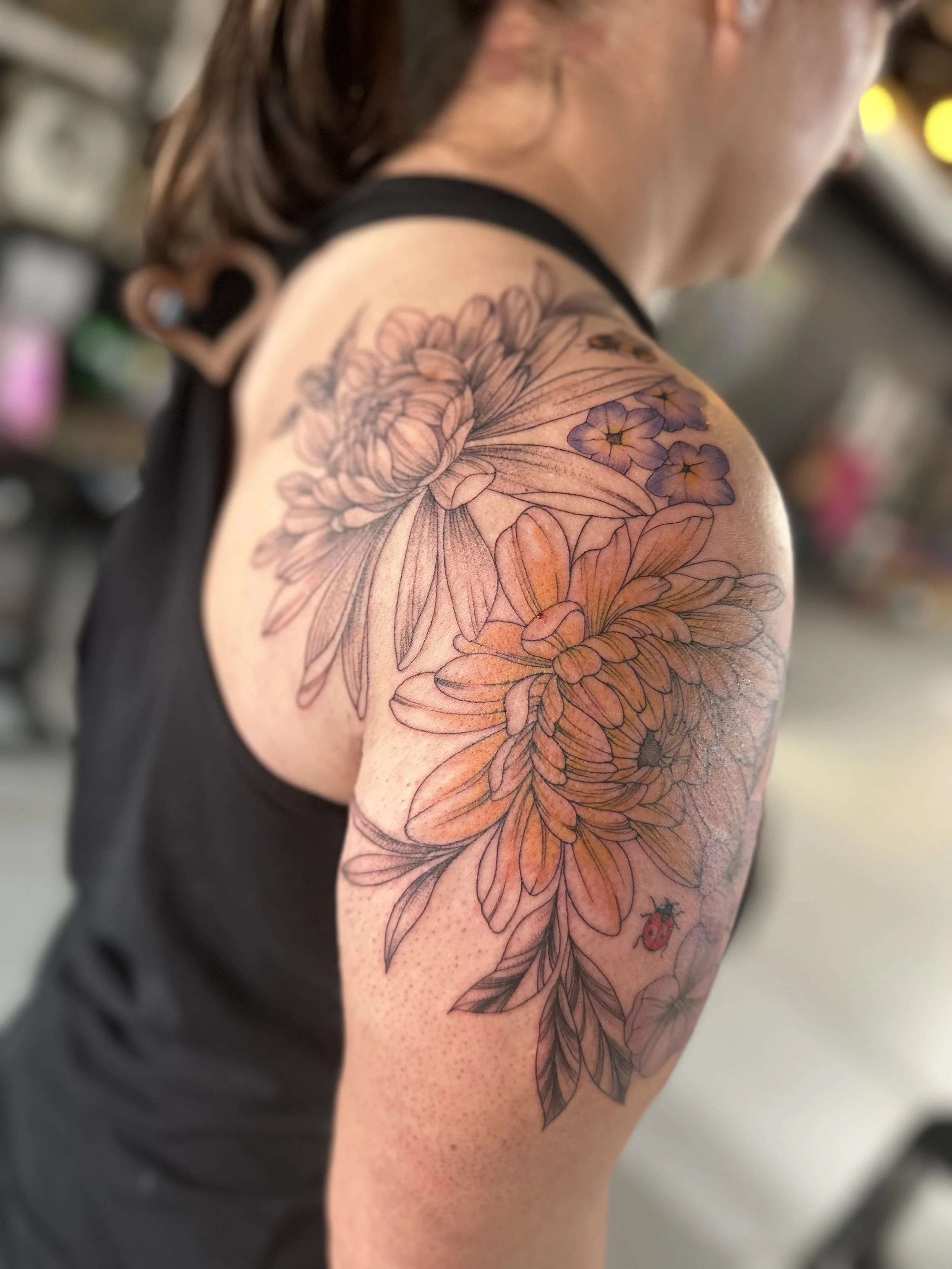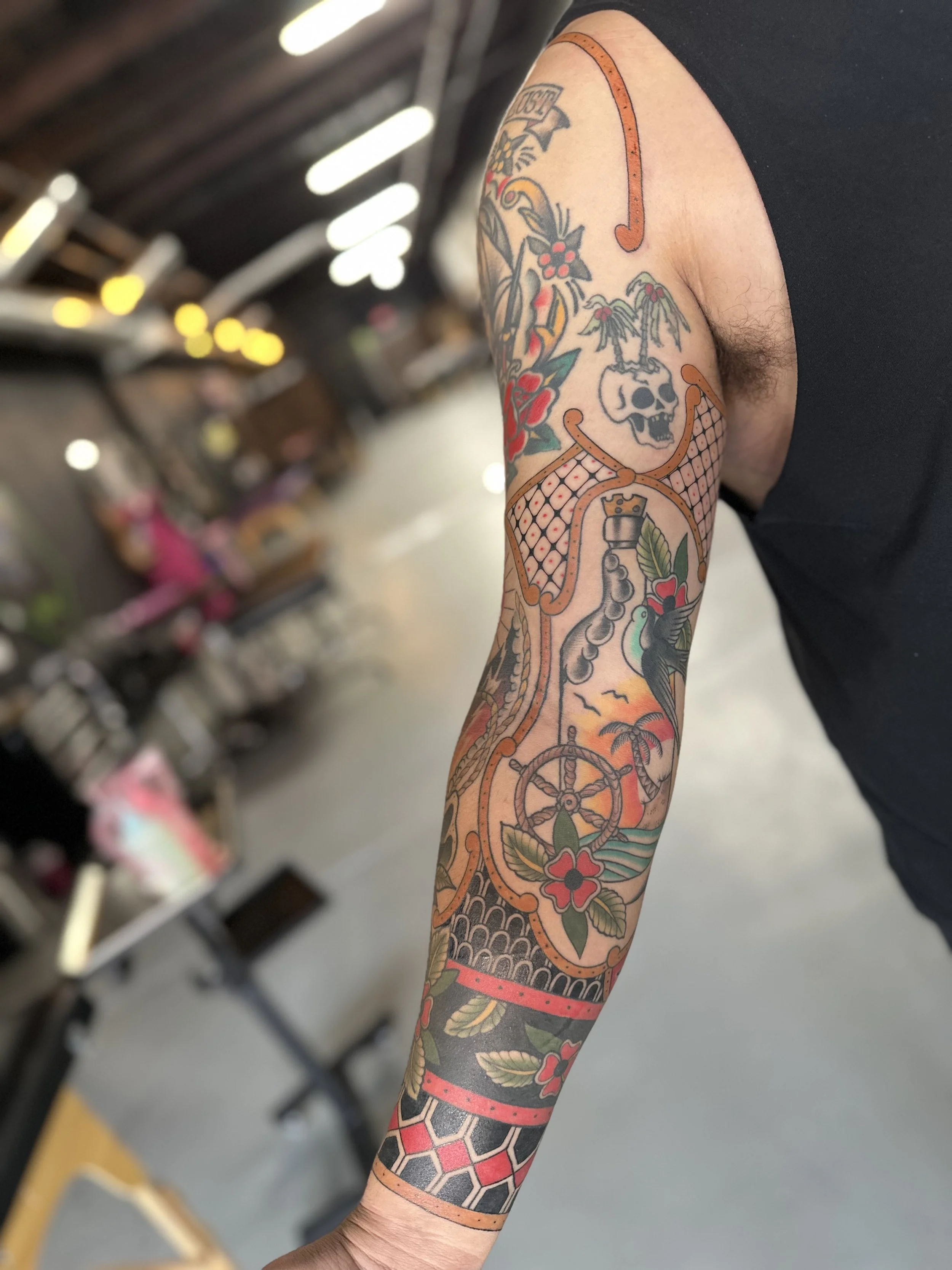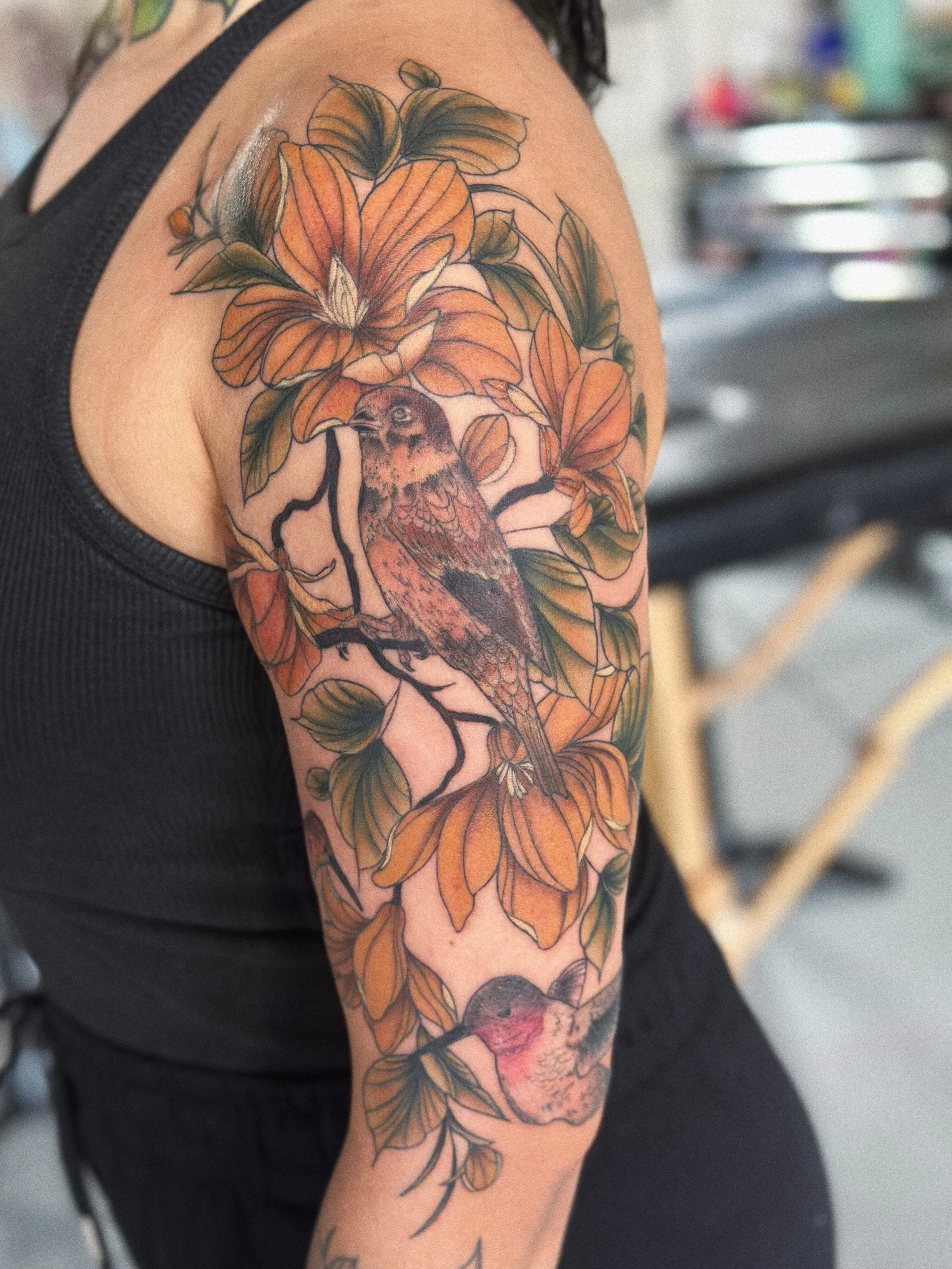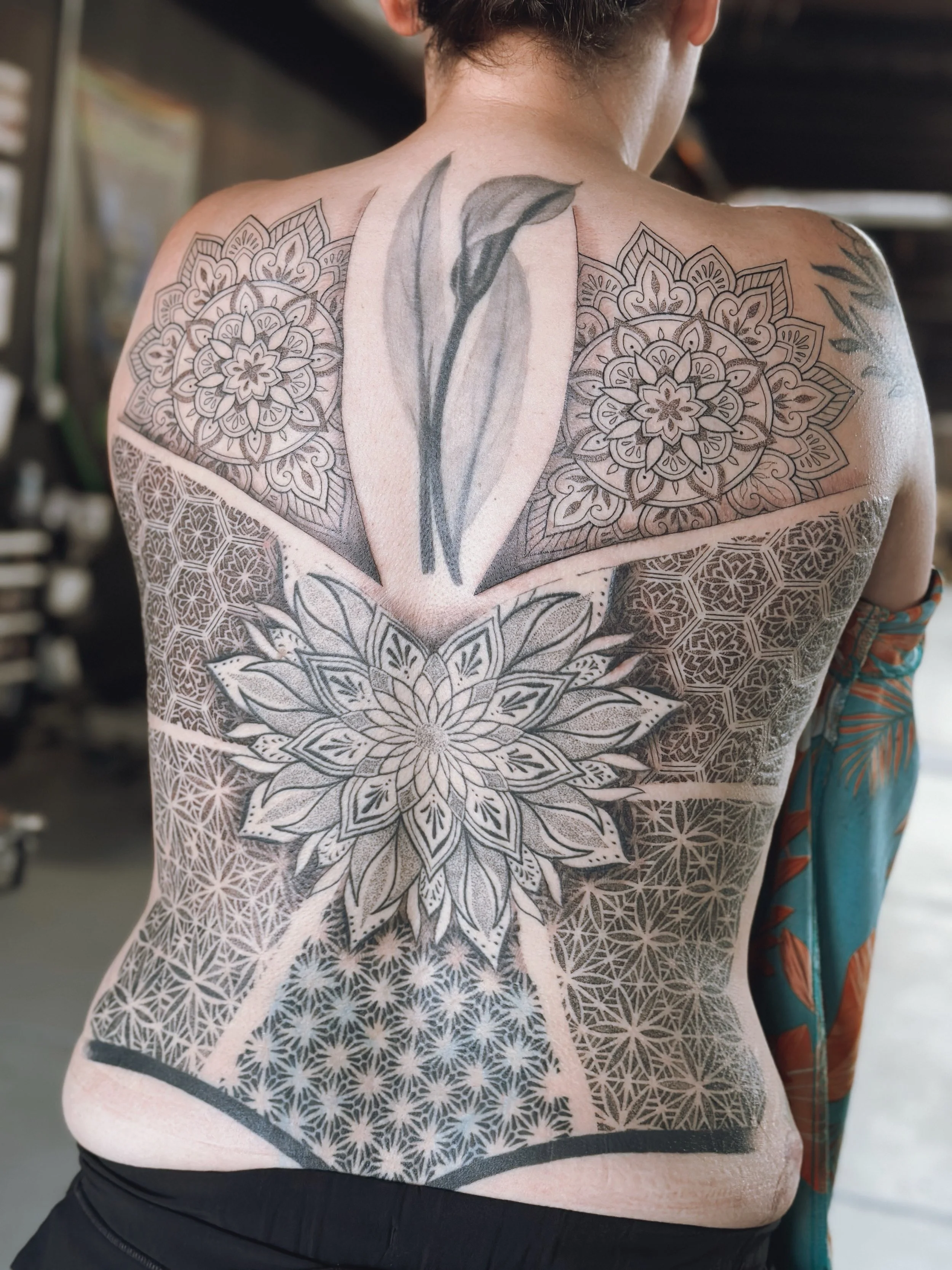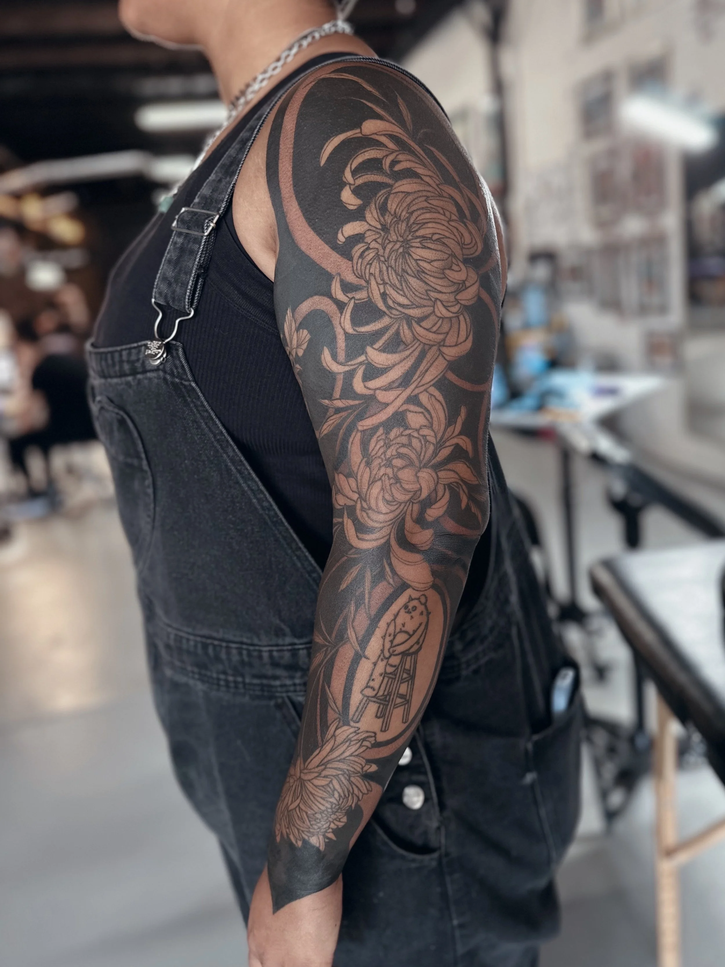 In terms of technique, I love doing illustrative blackwork and black and grey, but you’ll also find me working with color and the occasional traditional and neotraditional piece.
